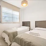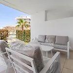The spacious 110 m² New Build 2Bedroom With The Small Private Garden Fuengirola apartment has a patio equipped with a swimming pool.